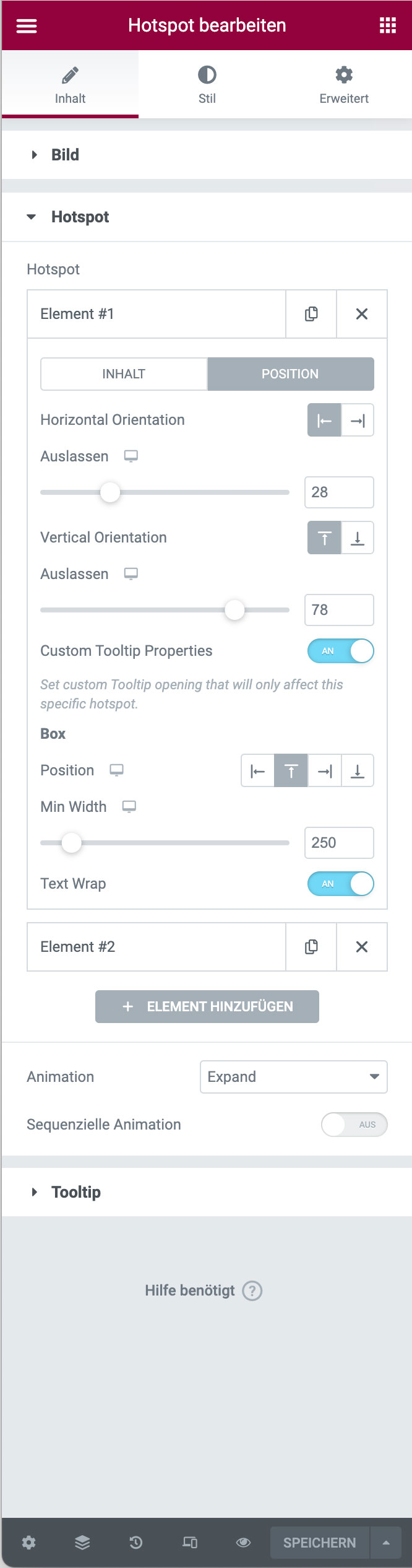 • Der Hotspot kann mit zwei Schiebereglern auf dem Bild verschoben werden.